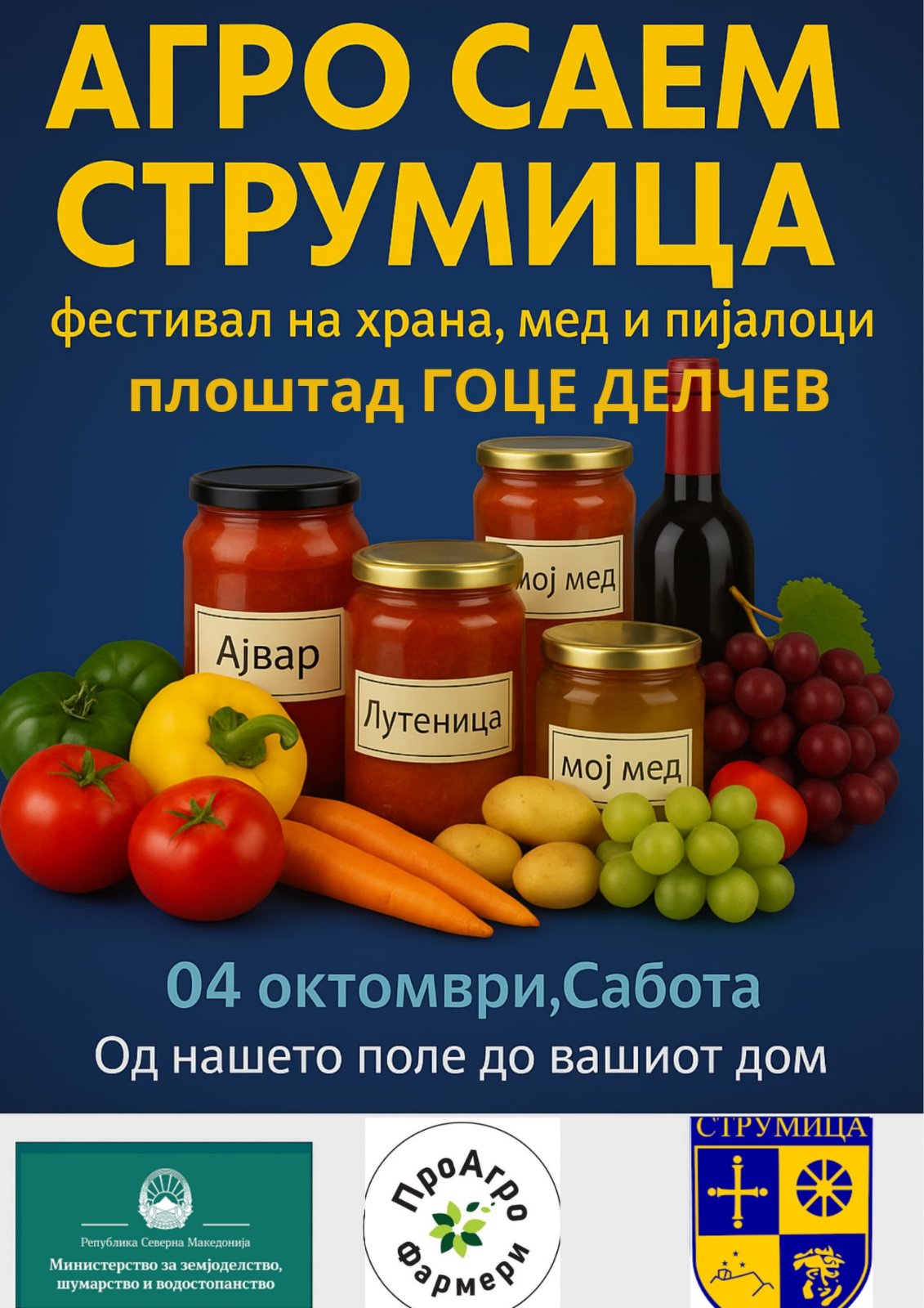 Во организација на здружението Проагро Фармери во Сабота, 4ти Октомври со почеток од 09часот, по петти пат ќе се одржи „АГРО САЕМ СТРУМИЦА 2025“ – најголемиот фестивал на храна, мед и пијалоци.
