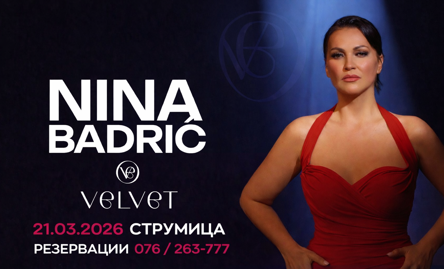 21.03.2026 – „Velvet“ Струмица. Вечер резервирана за музика, емоции и уживање со Нина Бадриќ.