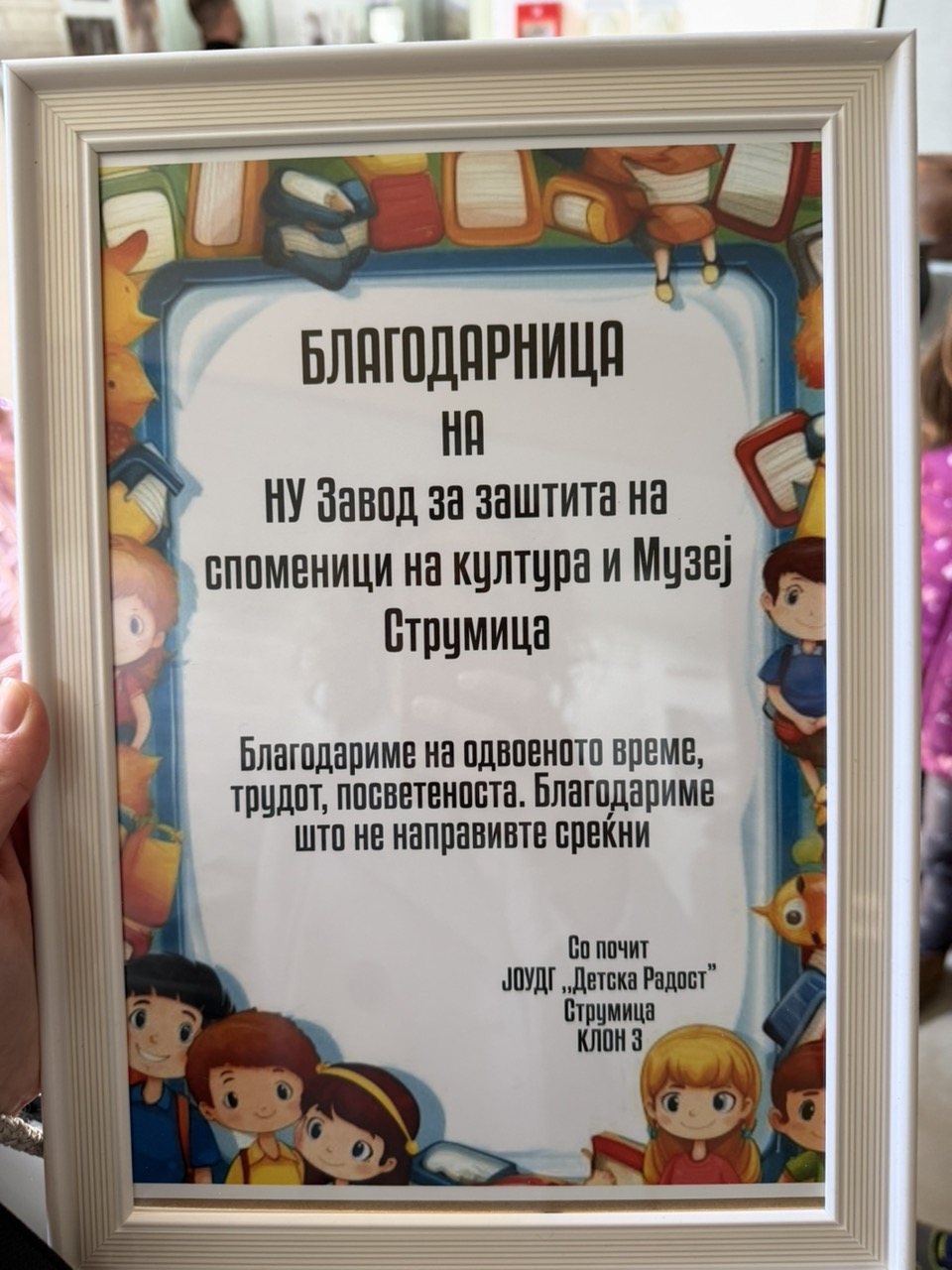 НУ Завод и Музеј – Струмица упатува искрена благодарност до учениците, дечињата, нивните наставници, воспитувачи и раководствата на ДСУ РЦСОО „Никола Карев“ – Струмица и ЈОУДГ „Детска Радост“ – Струмица за укажаната доверба и посетата.
